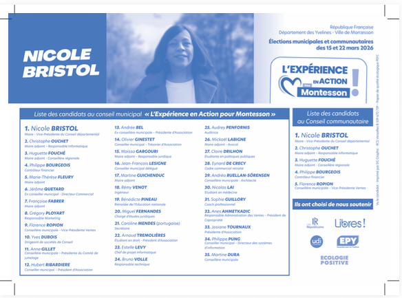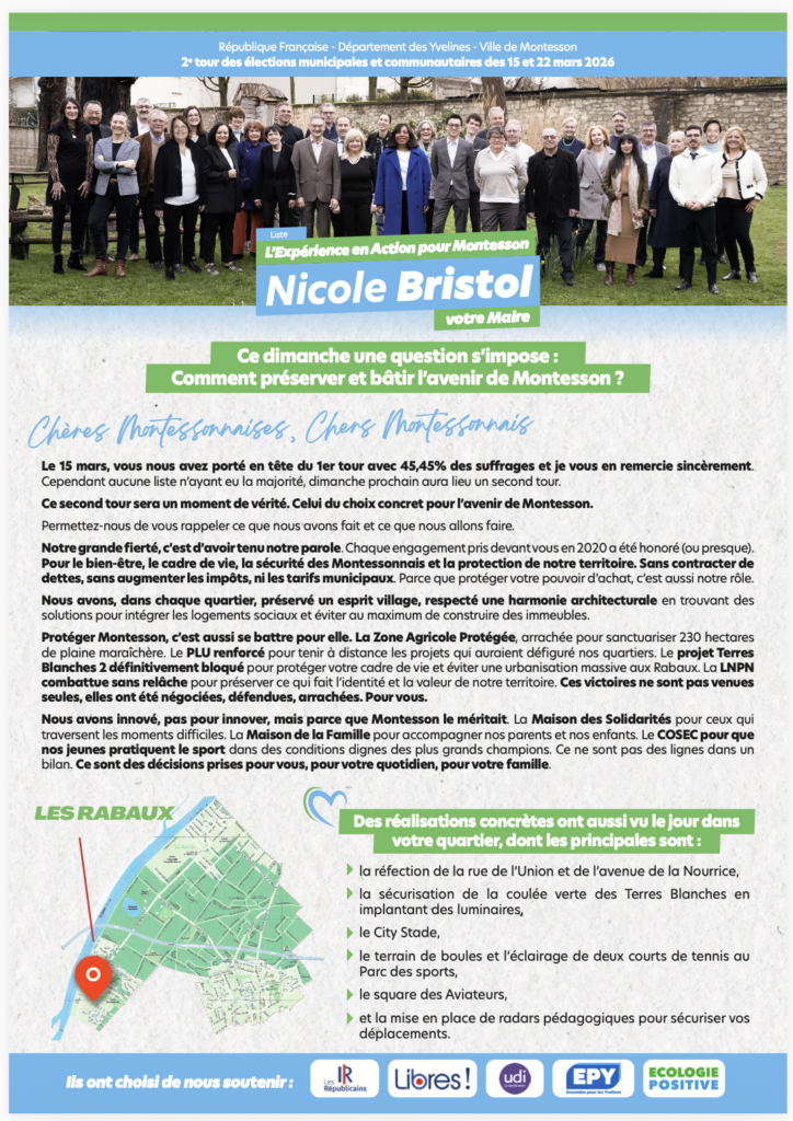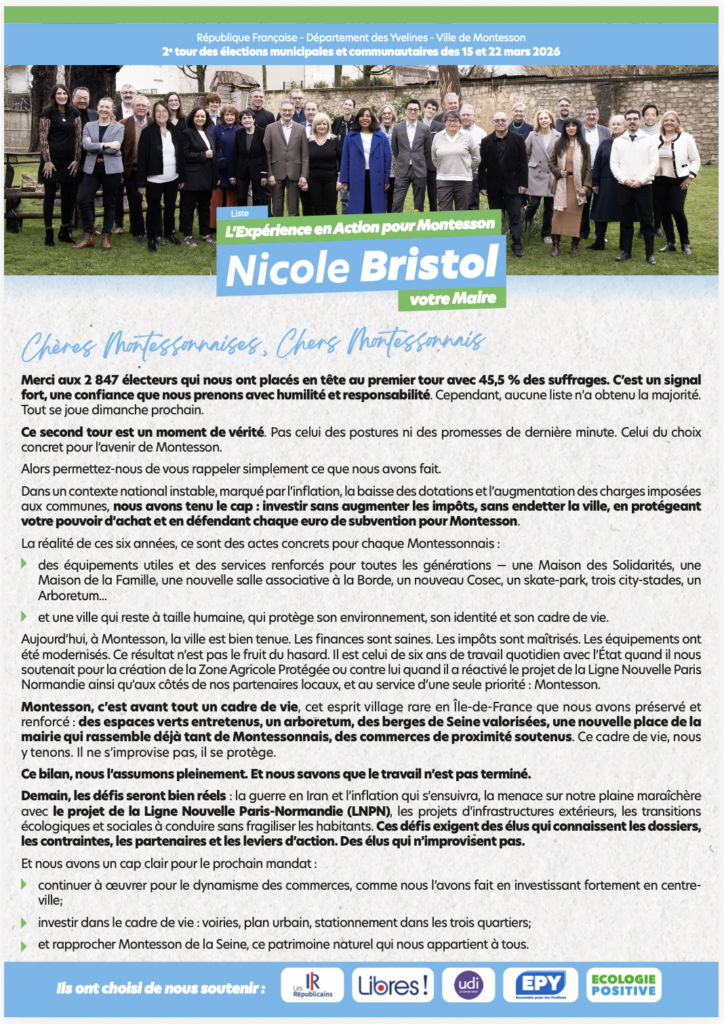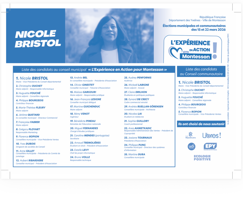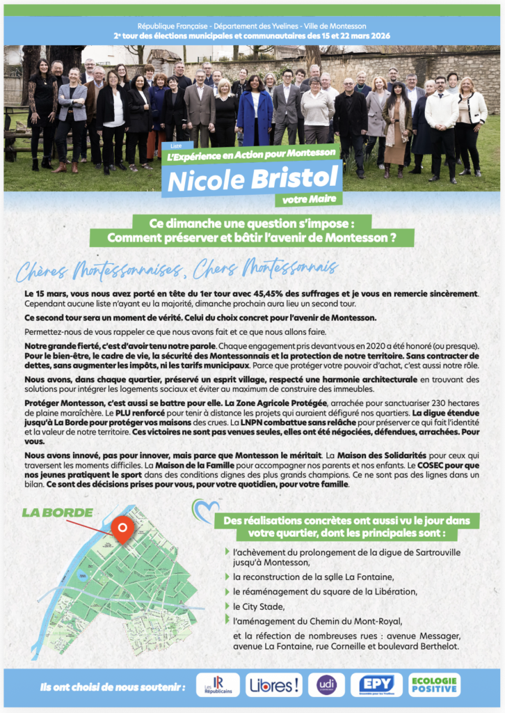 Le 15 mars prochain, votre vote dès le premier tour pour la liste « L’Expérience en Action pour Montesson » sera déterminant.