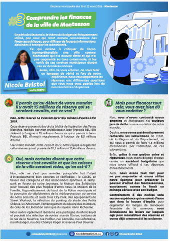 Nous avons préservé le pouvoir d’achat des Montessonnais : aucune augmentation d’impôts (avec même une baisse en début de mandat), aucune hausse des tarifs municipaux, zéro euro de dette et le taux communal le plus bas de notre Communauté d’Agglomération (C.A.S.G.B.S.).